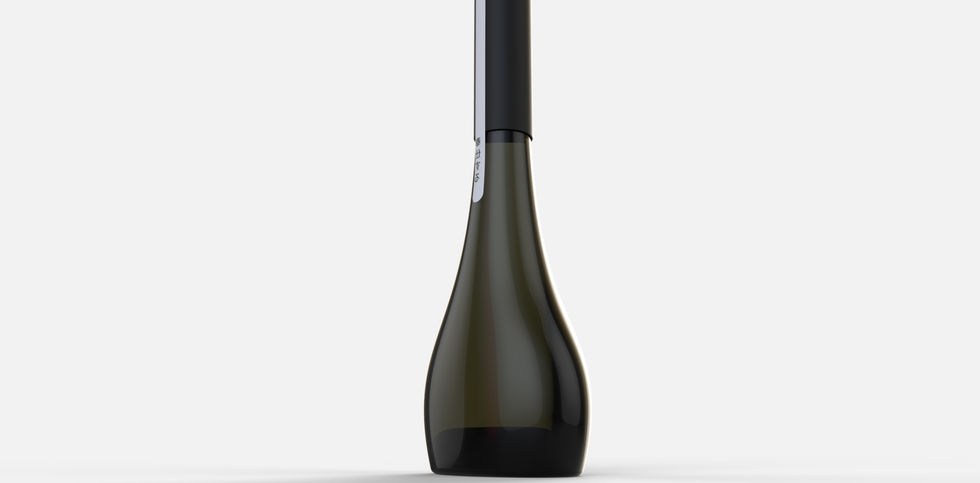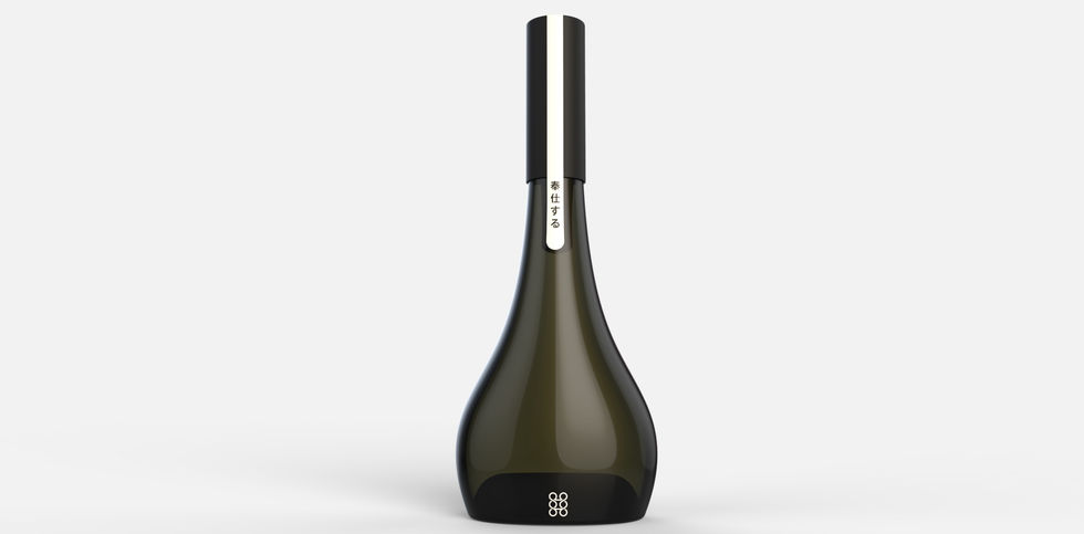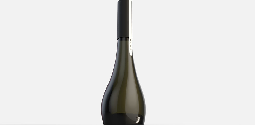 Campi é uma boa garrafa para servir saquê. A embalagem tem um design fluido e minimalista que permite a valorização do rótulo e da marca. Sua tampa é coberta por uma capa de papelão, fixada no corpo de vidro da embalagem por meio de um adesivo que leva o nome do produto e também sua marca, destacando essa informação com o mínimo de elementos.