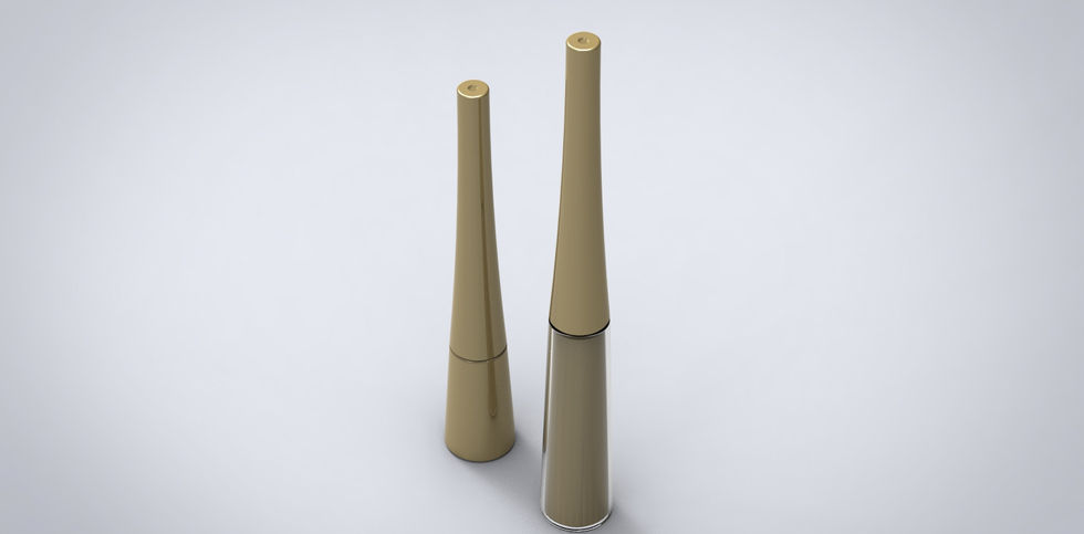Uma embalagem elegante e sofisticada para delineadores e glosses. A Faber-Castell solicitou uma embalagem dinâmica com design atraente, desenvolvida para atender a demanda de diversas marcas de maquiagem e ser revendida para elas. As tampas são injetadas e a garrafa feita através do processo de injeção-sopro-molde.